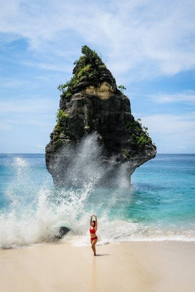 Η πεζοπορία μέχρι την παραλία διαρκεί περίπου 30 λεπτά και είναι εξαντλητική, αλλά αξίζει τον κόπο. Πρόκειται για ένα από τα αγαπημένα μου μέρη στην Penida. Υπάρχει ακόμη και ένας ωραίος μυτερός βράχος που μοιάζει με χριστουγεννιάτικο δέντρο.